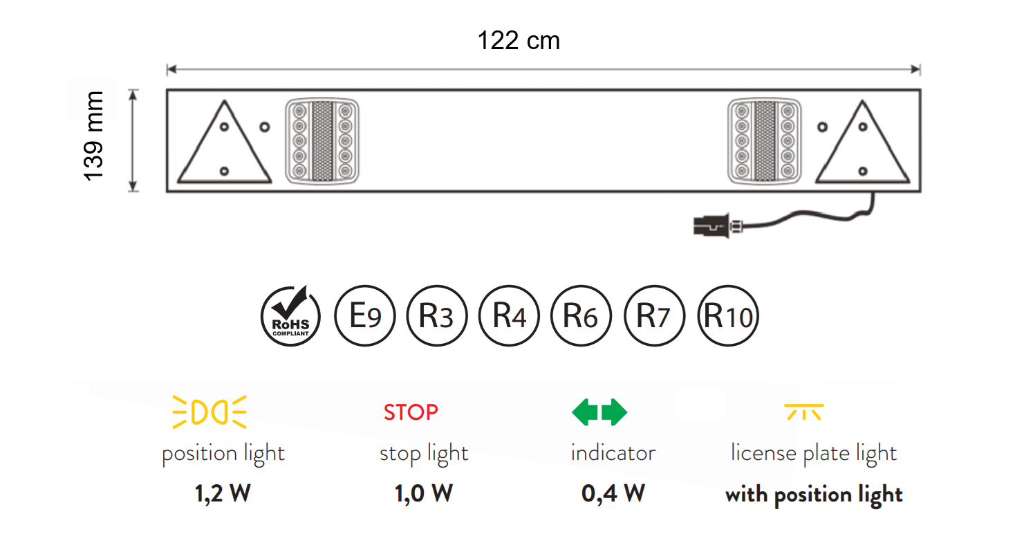 Conjunto fiável de luzes LED para reboques que combina todas as principais funções de iluminação numa única unidade, garantindo excelente visibilidade e segurança no trânsito. O conjunto distingue-se pelo baixo consumo de energia e pela longa vida útil.