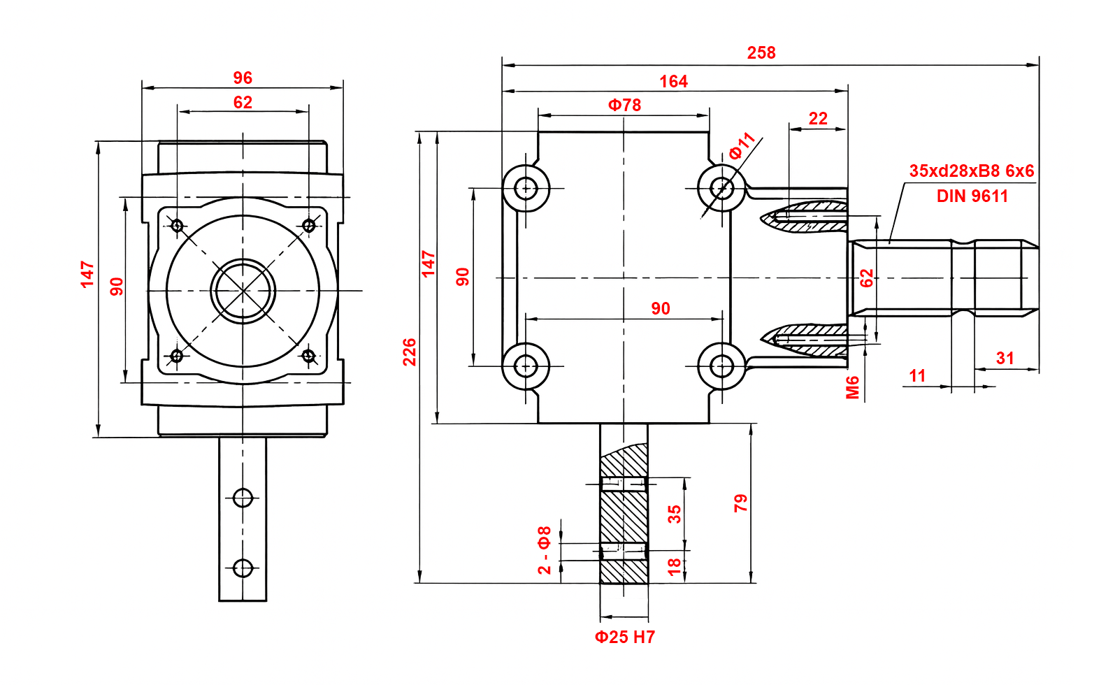 KOTNI REDUKTOR L-155J 1: 1,14 (16HP-12kW)