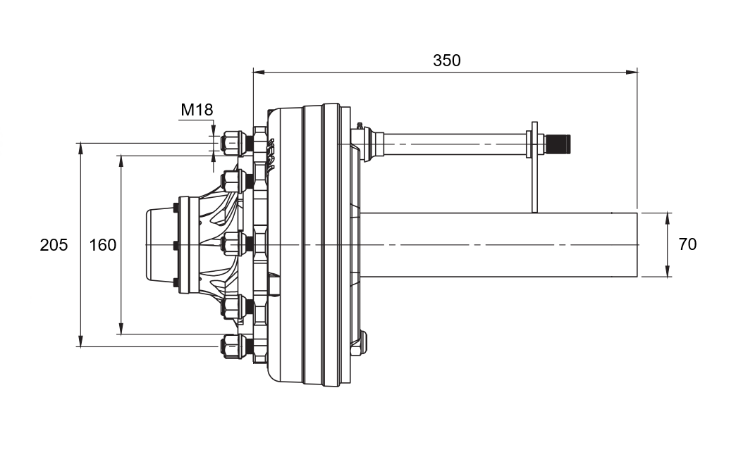 PUSASS AR BREMZĒM - 3600 kg (6 SKRŪVES) - 250 mm