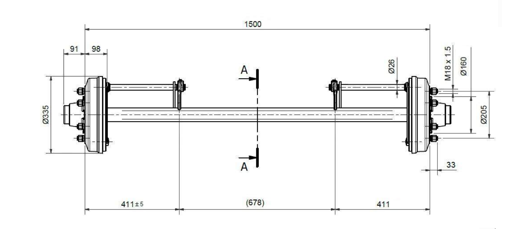 ASS PIEKABEI AR BREMZĒM (6 SKRŪVES) - 4800 kg - 1500 mm