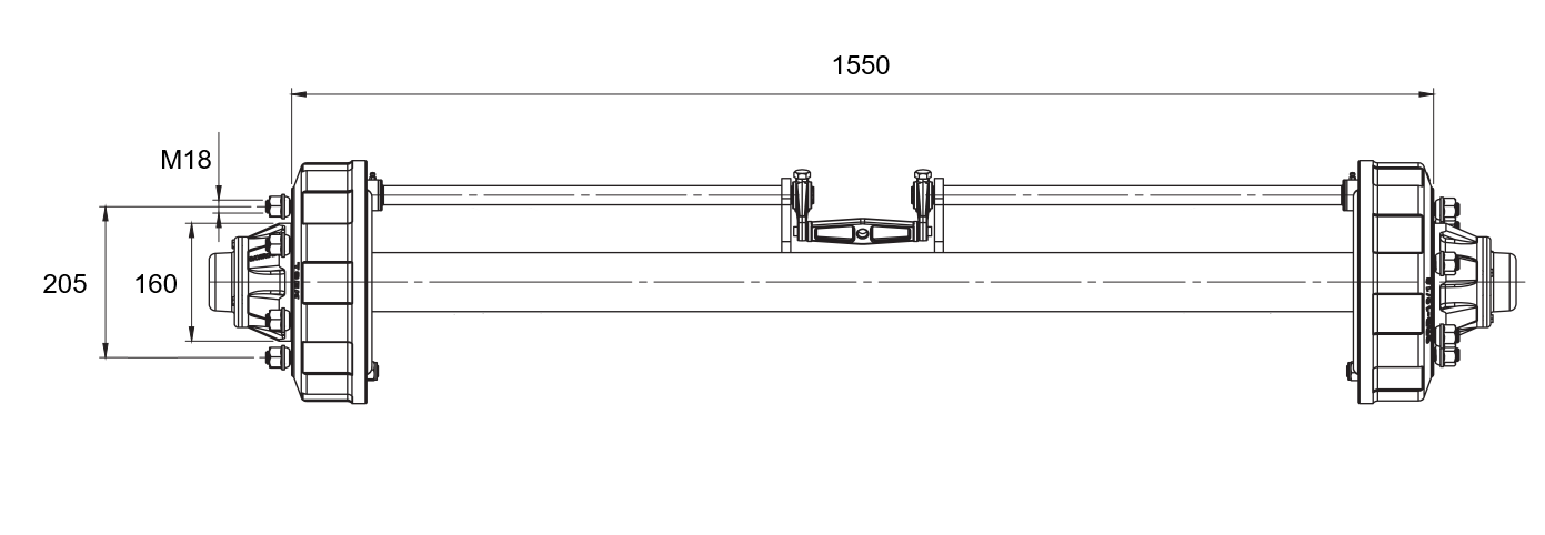 ASS PIEKABEI AR BREMZĒM (6 SKRŪVES) - 3800 kg - 1550 mm