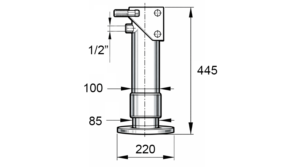 PAGRIEŽAMA DIVPUSĒJAS DARBĪBAS HIDRAULISKĀ ATBALSTA KĀJA (Φ100x445 mm) - GAJIENS 250 mm - 6.000 kg