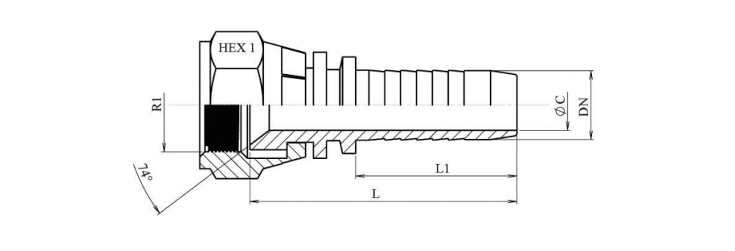 HIDRAULISKĀ SAVIENOJUMS DKJ JIC74° SIEVIETES DN13-1” 1/16-12