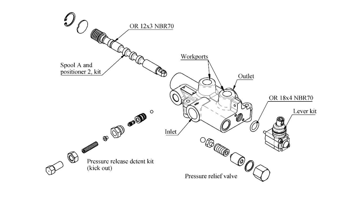 Vārstam ir automātiska spiediena atvieglošanas funkcija. Kad tiek sasniegts iestatītais spiediens (fabrikā iestatīts 150 bar), tas automātiski atgriež svira neitrālā stāvoklī.