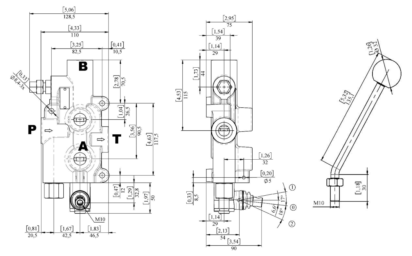 | Savienojuma vītne: | P un T ports – 3/4", A un B ports – 1/2" |