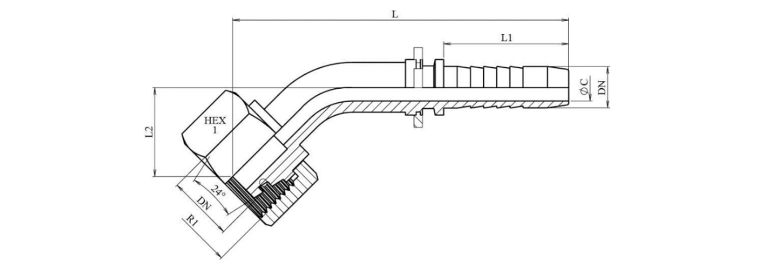 HYDRAULISK ANSLUTNING DKOL 15 L MED HON ELBOW 45 DN12-M22X1,5