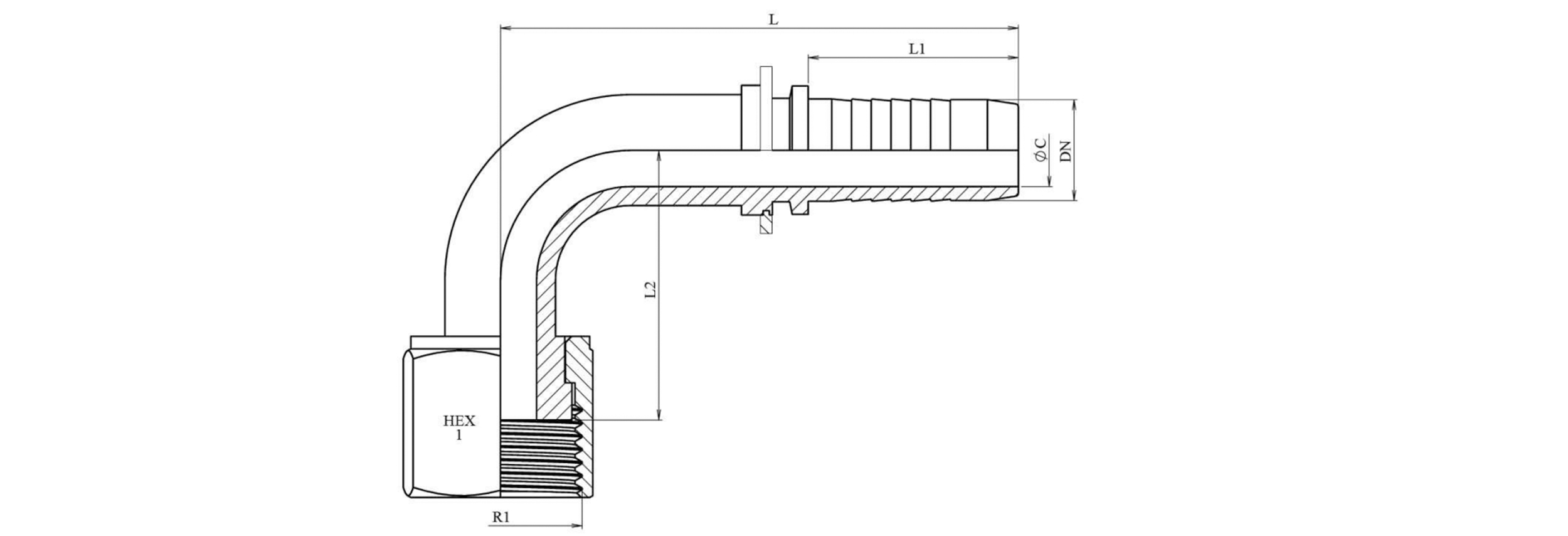 HYDRAULISK ANSLUTNING DKORFS HON ELBOW 90° DN38-2