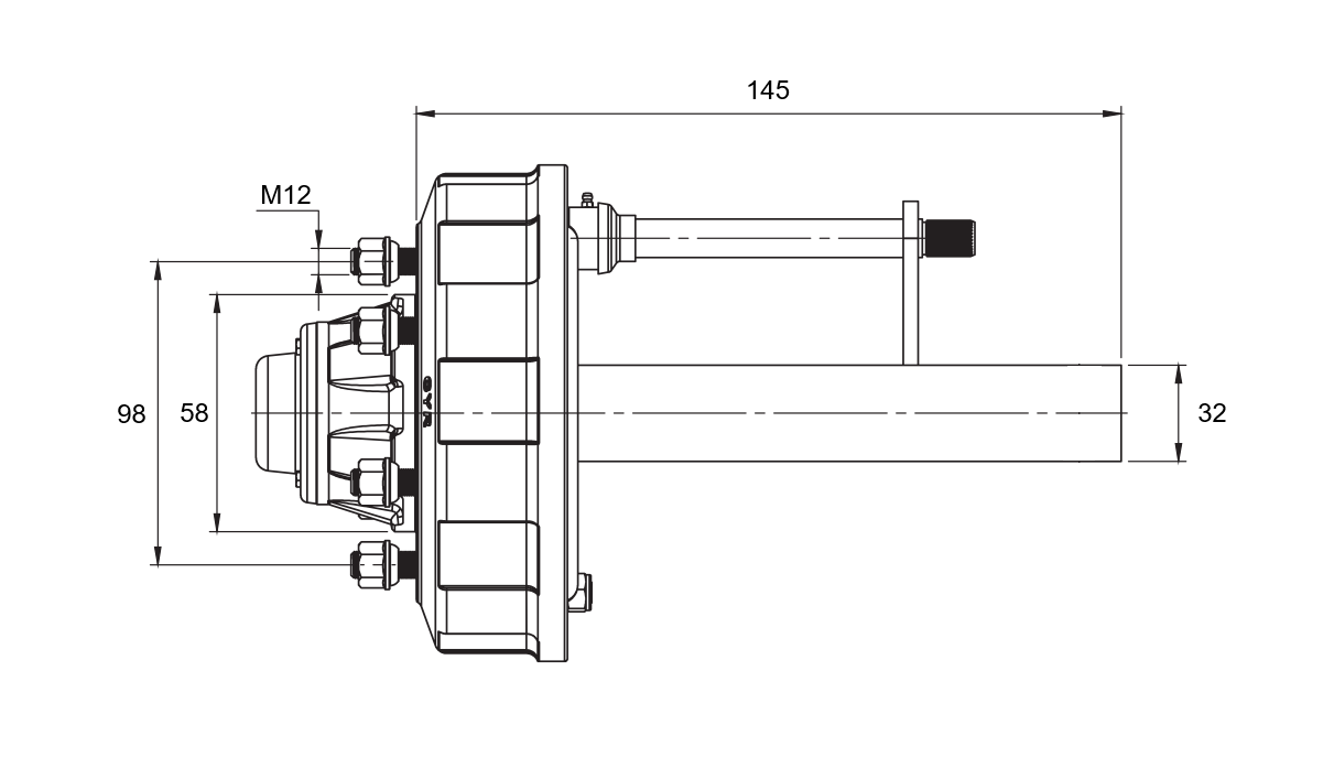 Zaradi robustne izdelave in zanesljive konstrukcije je primerna za uporabo na tovornih in delovnih prikolicah, kjer je potrebna stabilna in vzdržljiva osna podpora kolesa.